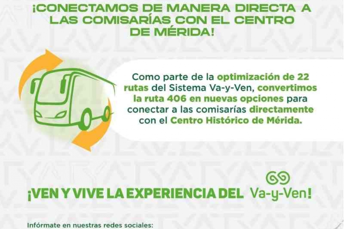 La Agencia de Transporte de Yucatán (ATY) optimiza la Ruta 406 para conectar de manera directa las comisarías del norte con el Centro de Mérida