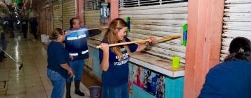 Doña Cecilia, la alcaldesa de Mérida, limpia el Mercado Lucas de Gálvez.