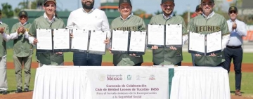Promueven incorporación a la seguridad social de personal del Parque de Béisbol Kukulcán _El Gobernador Joaquín Díaz Mena y el director general del IMSS, Zoé Robledo Aburto, atestiguaron la firma de un convenio con el club Leones de Yucatán que promoverá