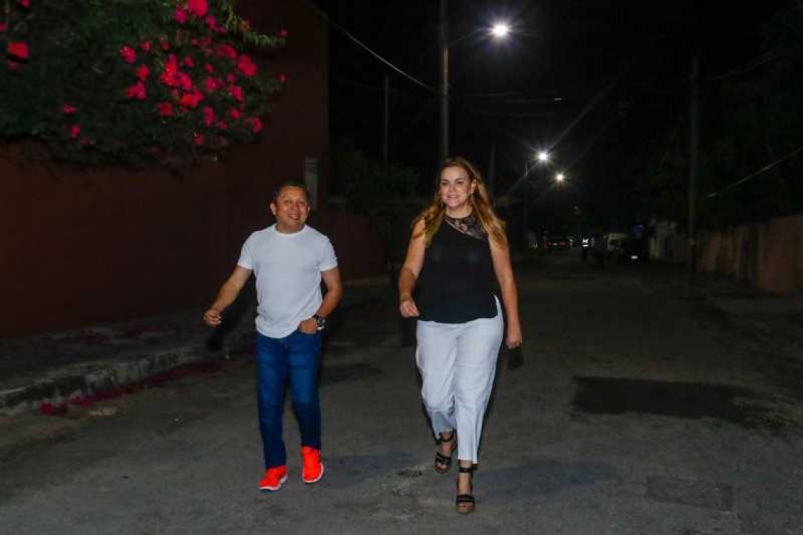 Supervisa Cecilia Patrón cambio de luminarias LED en San Antonio Kaua.